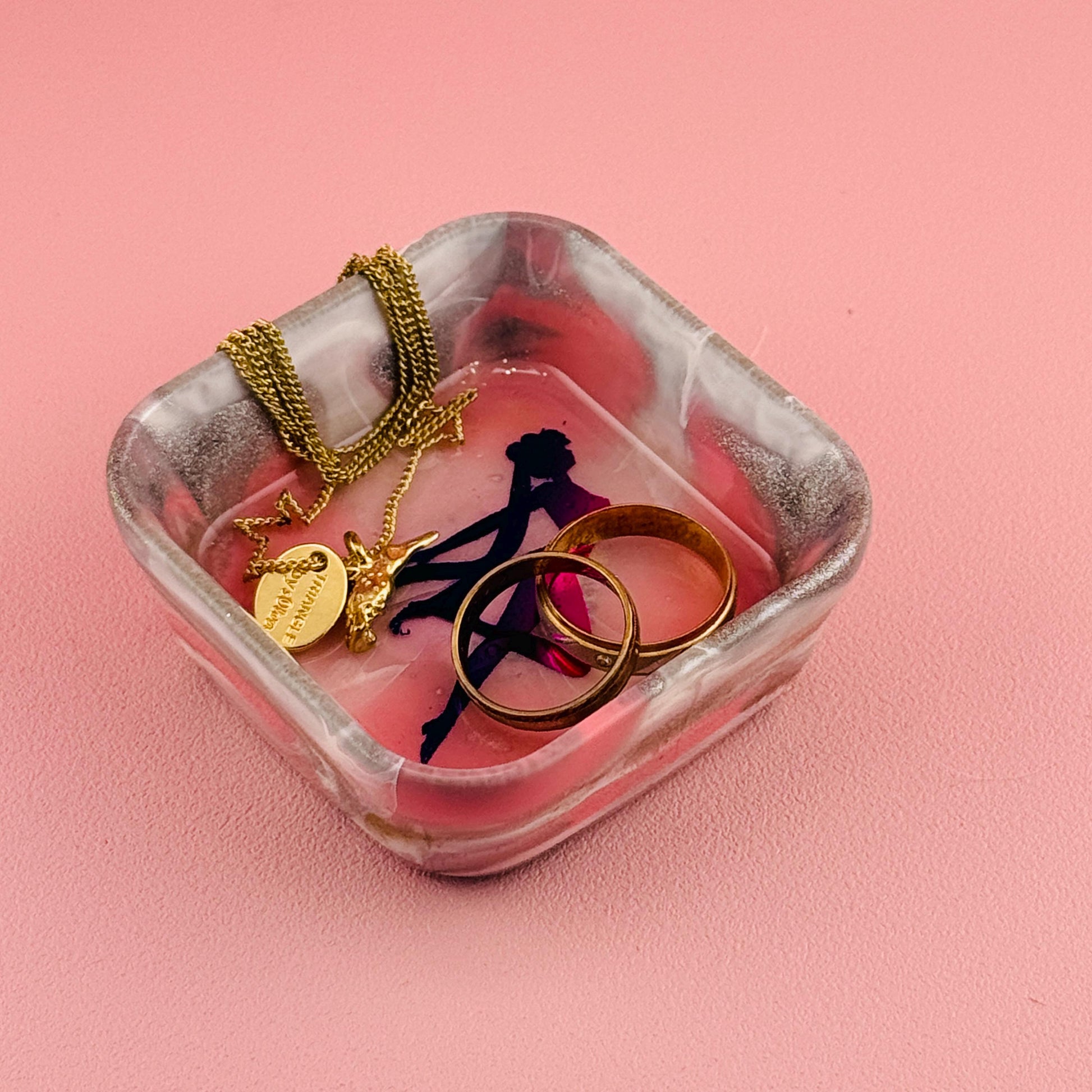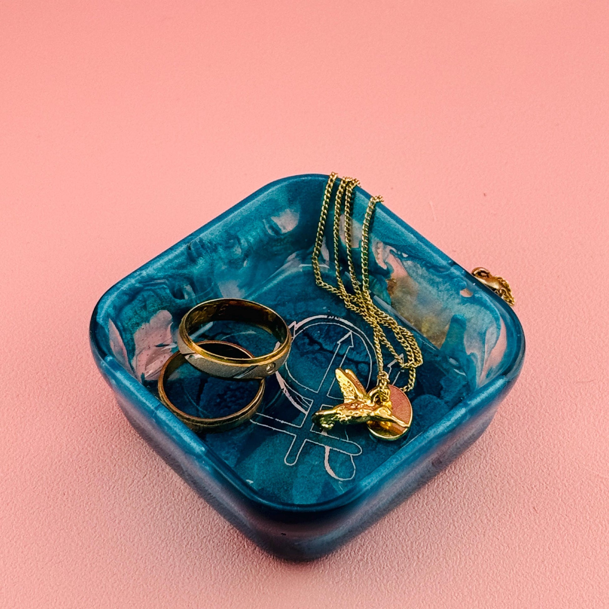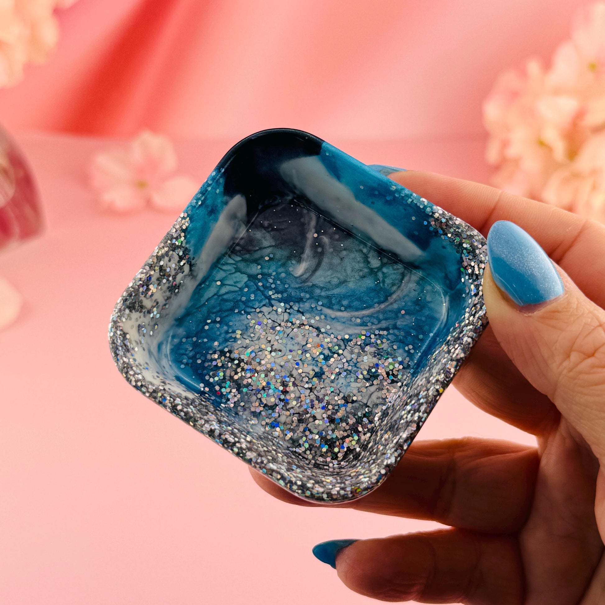 Diese kleine Schmuck- und Ablageschale aus Epoxidharz ist perfekt, um deine wichtigsten Schmuckstücke sicher und sichtbar aufzubewahren.
